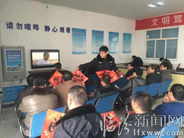 新春佳节即将来临,临汾市交警支队交通违法教育大厅针对“平安春运,交警同行”主题宣传活动,组织大中型客货运车驾驶员集中观看安全警示教育片,并送出新年祝福。