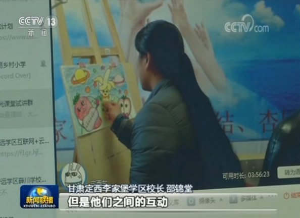 甘肃定西李家堡学区校长 邵锦堂:老师在线上的这一头,学生在线下的另一头,虽然距离离得很远,但是他们之间的互动、语言交流、表情等等都是同步的。