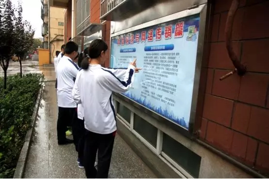 临汾市第一实验中学学生观看网络安全知识展板