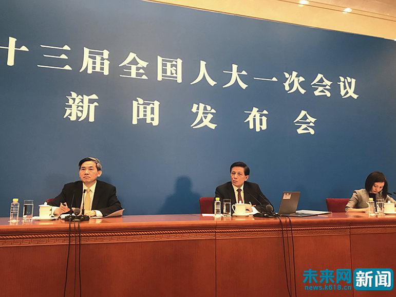 十三届全国人大一次会议今日在人民大会堂举行第一次新闻发布会。(未来网记者 谢青摄)