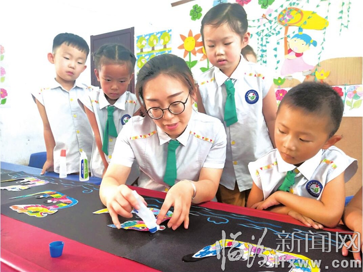 临汾新闻网讯 在端午节到来之际,翼城县唐兴镇城内村古城国学实验幼儿园开展了“讲民俗,话传统,端午情——我们的节日”系列主题活动,通过介绍端午节的由来以及其相关的故事,让孩子们感受传统文化的魅力。图为老师和孩子们一起制作龙舟贴画。