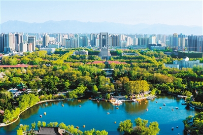 从兴庆宫公园俯瞰西安交大校园(2015年4月13日摄)
