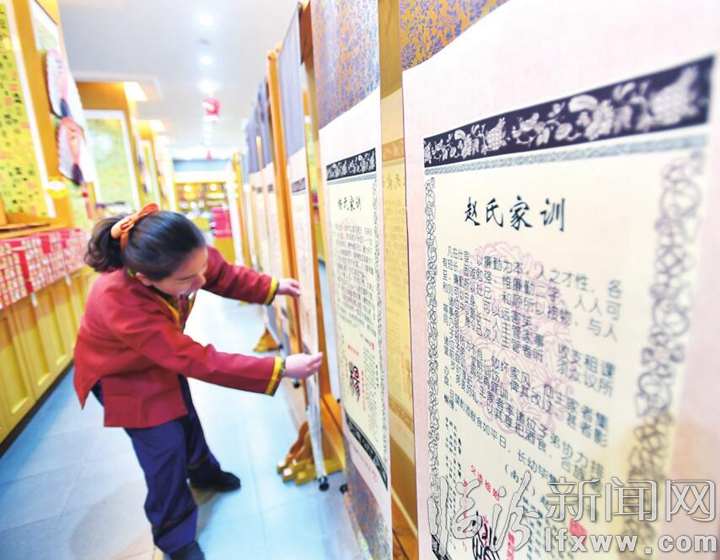 临汾新闻网讯 为了迎接全省旅发大会在我市召开,洪洞大槐树寻根祭祖园围绕中华姓氏为主题,积极开发具有景区特色的文创纪念品达300余种,游客在游览景区的同时,还可以选择自己喜欢的纪念品。图为景区旅商开发部的工作人员正在整理姓氏家训的商品。