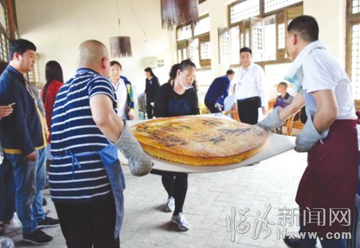此次大赛以“助力旅发大会·大众美食香飘丁陶”为主题,比赛分为“巨型饼”专门制作和“新奇特”烧饼创意制作两项,让选手通过技能展示、技艺展演、种类研创,继而提高烧饼制作水平,搭建创业者创客空间。