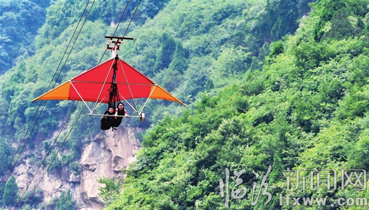 图②刺激的滑翔翼让游客畅游在大山之间。