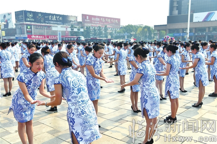青春是最美的颜色。与500余名市直单位志愿者相呼应的,是352名身着一袭青花旗袍的年轻女孩,她们亭亭玉立、端庄娴淑的形象惊艳了全场,她们优雅标准的文明礼仪展示赢得了掌声。
