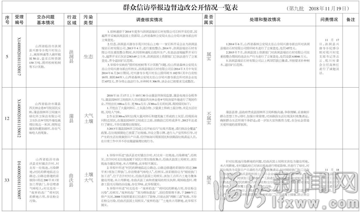 临汾市关于中央生态环境保护督察“回头看”交办群众信访举报问题边督边改情况通报