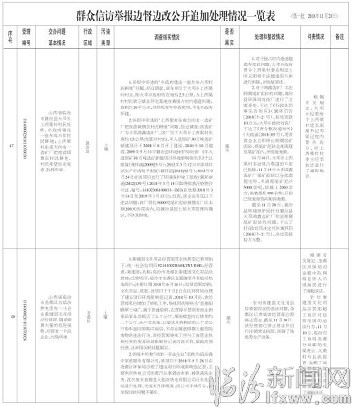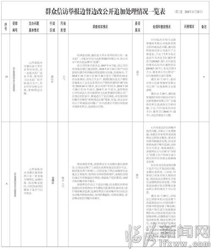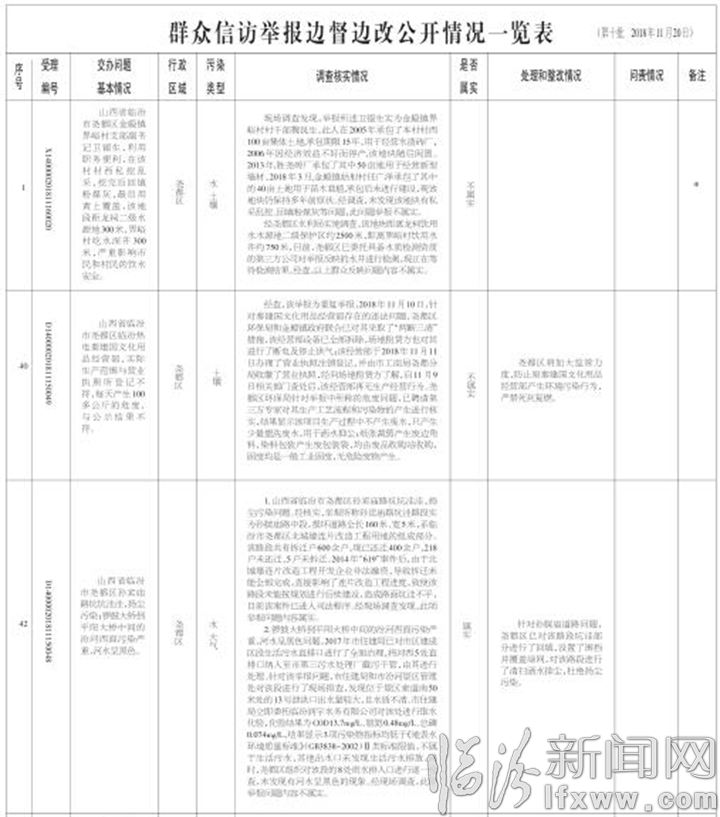 临汾市关于中央生态环境保护督察“回头看”交办群众信访举报问题边督边改情况通报