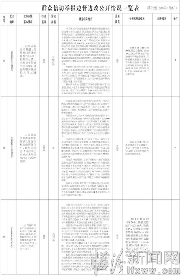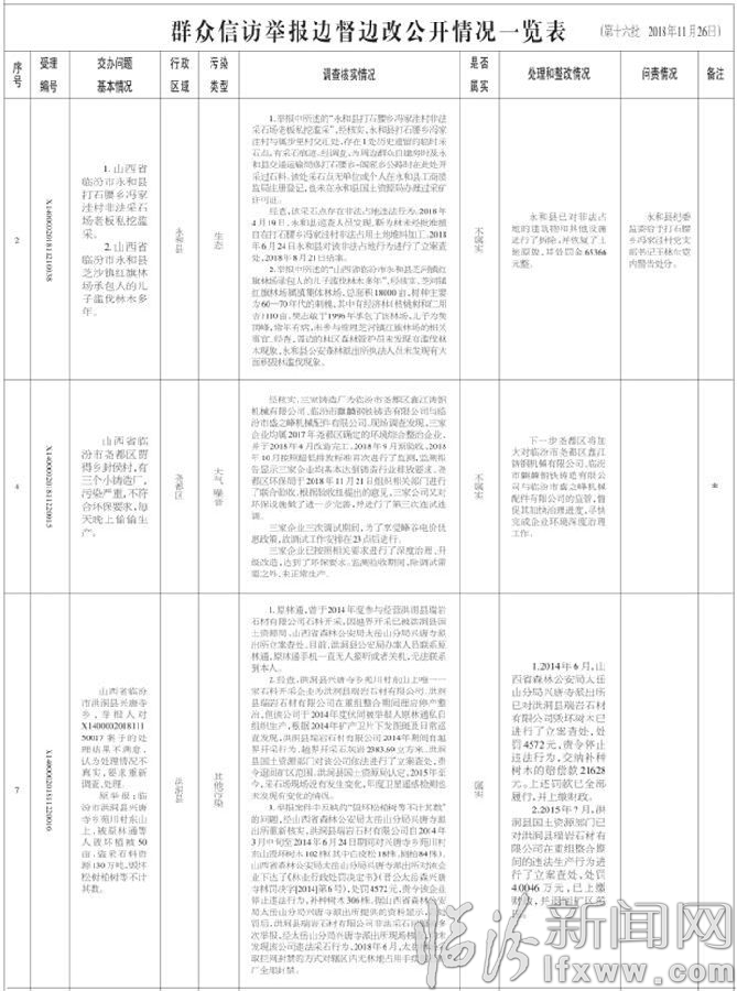 临汾市关于中央生态环境保护督察“回头看”交办群众信访举报问题边督边改情况通报