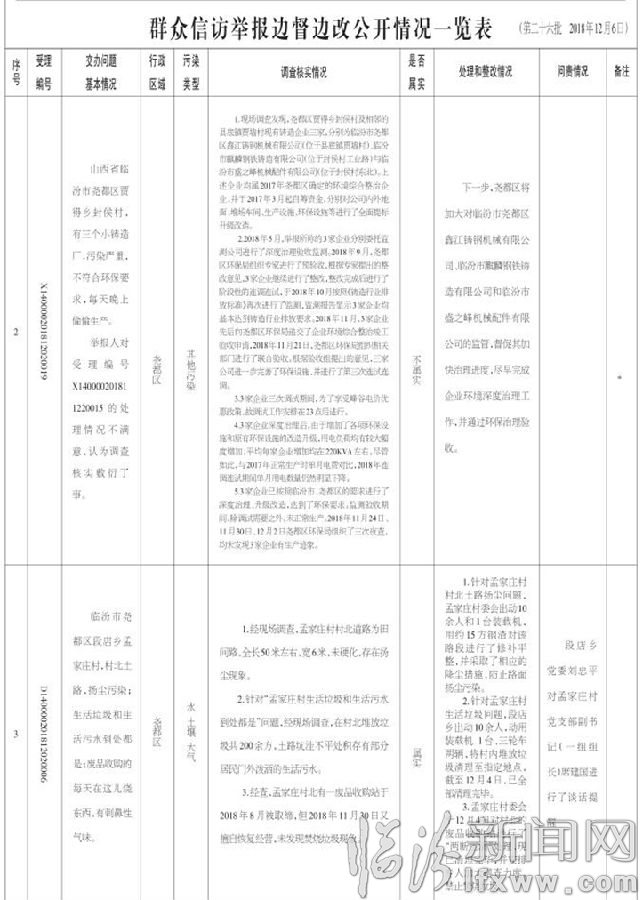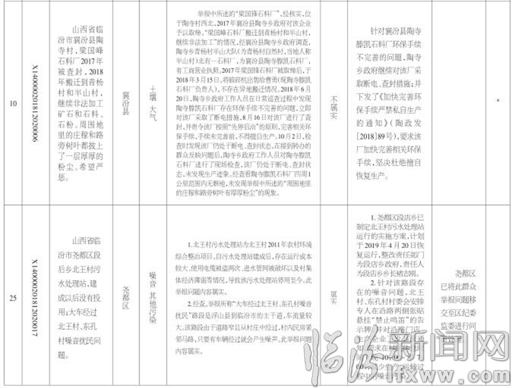 临汾市关于中央生态环境保护督察“回头看”交办群众信访举报问题边督边改情况通报