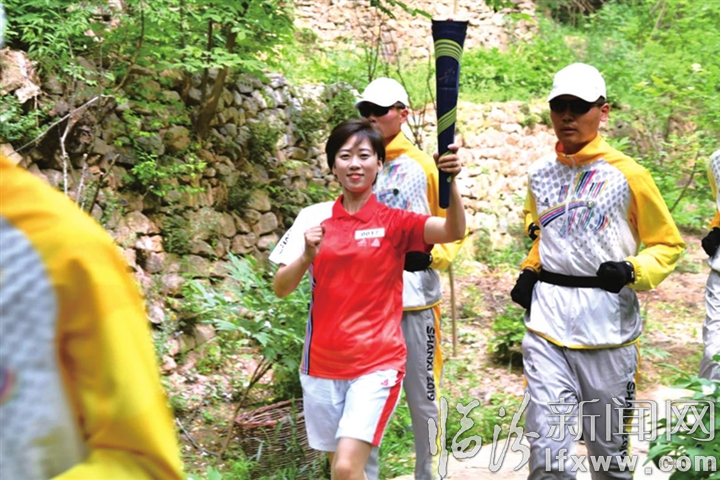 图为5月15日上午,二青会火炬在襄汾县传递。记者 闫锐鹏 摄