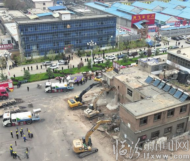 二中路工程指挥部的工作人员说,二中路从2012年拓宽改造至今,几经坎坷、历尽磨难,终于有了今天的模样。这条街是目前市区旧城改造中最宽阔、文化氛围最浓厚的一条街。街道绿线80米、红线60米,机动车双向八车道,在绿化、美化上下了大功夫。但是,这座“霸道房屋”占压道路红线,致使交通事故频发,严重危害了社会公共安全。为确保这次行动能顺利进行,市、区两级政府专门成立了拆除工作领导组和现场指挥组,现场指挥组又下设16个工作组,对整个行动进行了周密安排部署。1000余人共同参与,动用挖掘机、抑尘车、拖板车、渣土车、货运车等各类工程机械100余辆,共铲除清理建筑垃圾3000余立方米。从拆迁开始到铺设路面完成,只用了24个小时,速度之快、秩序之好前所未有。