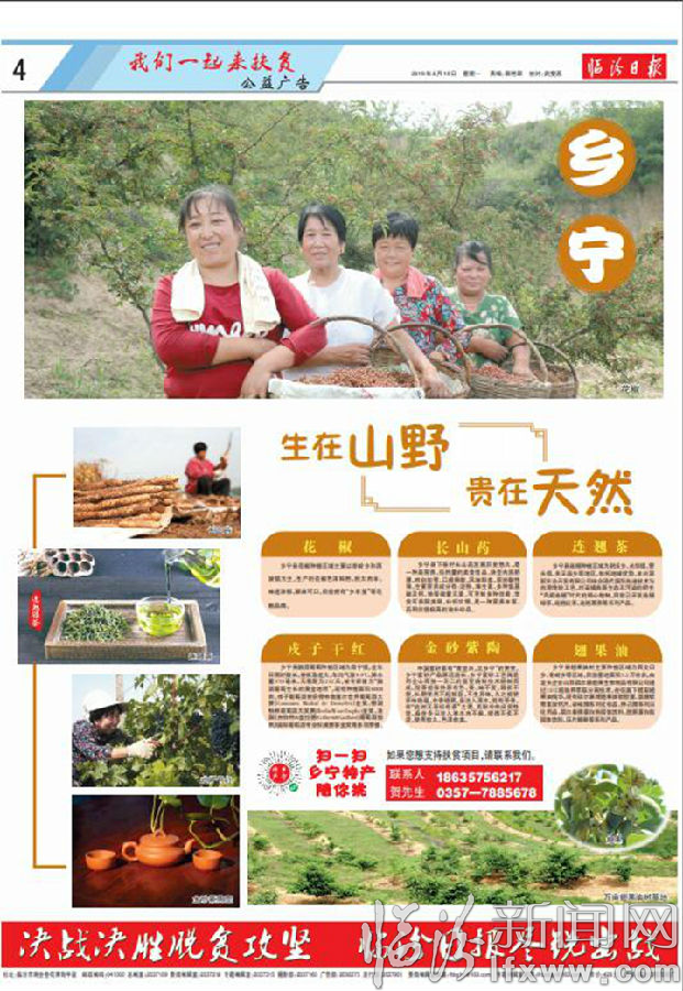 乡宁县翅果油树主要种植区域为西交口乡、枣岭乡等区域,目前基地面积5.2万余亩,由龙头企业山西琪尔康翅果生物制品有限公司通过CO2超临界萃取分离技术,在低温下提取翅果油精华,现有琪尔康牌翅果油软胶囊、氨糖软骨素加钙片、朵枝牌系列化妆品、持己牌系列日化用品、琪尔康牌蛋白粉固体饮料、胶原蛋白肽固体饮料、压片糖果等系列产品。