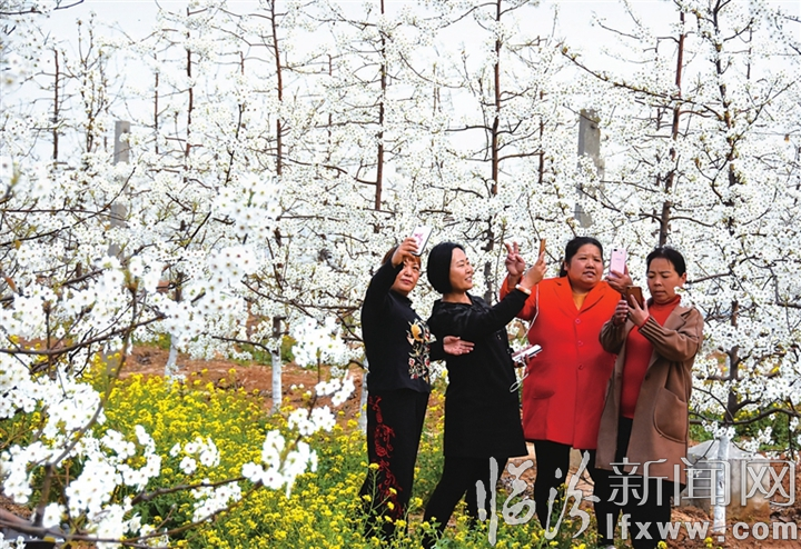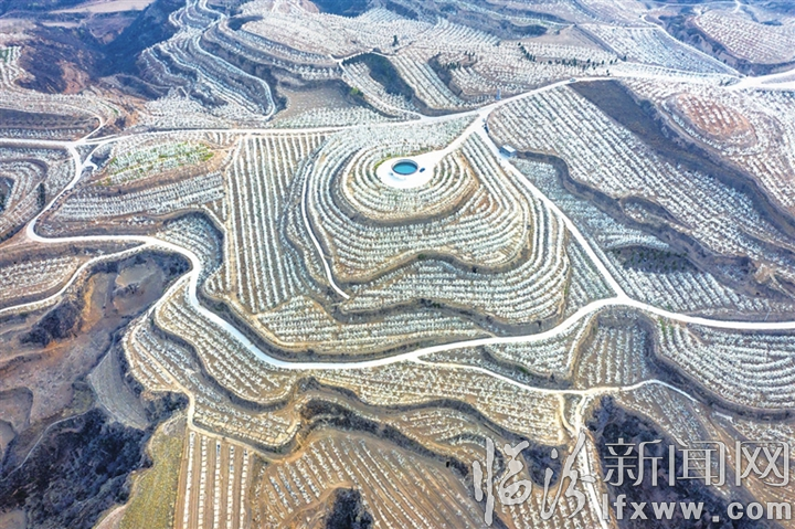 生活在汾西县城的杨文珍相约友人专程赶来这里赏梨花,她透过摄影记者的航拍相机俯瞰3000亩梨园的如雪盛景感叹不已。她说:“谁都知道这里曾经是荒草灌木丛生,有三分之一是撂荒地、瘦塬薄坡亩收入都不足百元。现在的这里繁荣景象,真是后来者居上啊!”