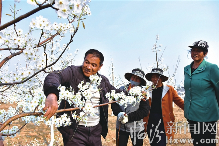 4月是梨园最忙的时候,梨树拉枝、刻芽、疏花、疏果、修剪等农活儿正逐步开展。果园生产存在劳动密集型、轻体力活、技能活为主的特点,对肢体残疾者来说,正是很好的就业选择。