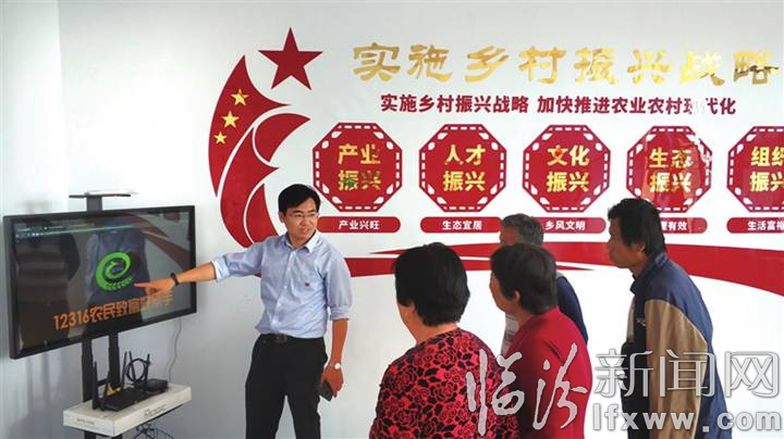 走进益农信息社,“实施乡村振兴战略,加快推进农业农村现代化” 几个红色大字熠熠生辉,旁边有一台显示屏,王斌向村民们兴致勃勃地讲解道:“只要点开网站,在上面发布信息,你的产品就能销往全国各地……”