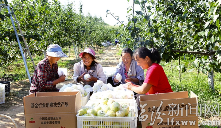 临汾新闻网讯 初秋时节,湛蓝的天空下,黄澄澄、金灿灿的梨挂满了汾西县团柏乡梨园的沟沟坎坎,片片绿油油的果园里,金梨散发着淡淡的清香,果农们辛勤地除草、摘果、套袋、装筐,等候的客商们把一车车“金蛋蛋”运向了北、上、广、深等地,丰收的喜悦映满了果农的幸福。