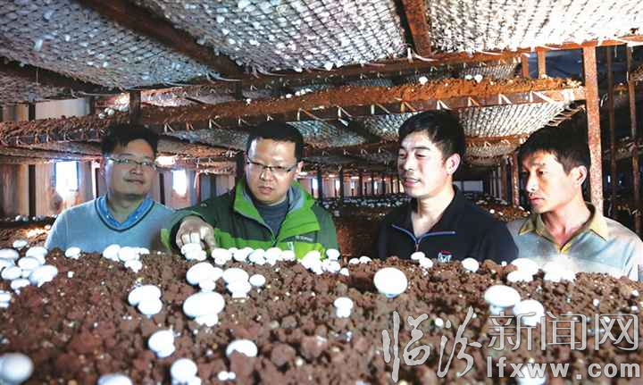 穆光远在双孢菇基地为村民讲解储存和封运要点。 记者 郑远飞 摄