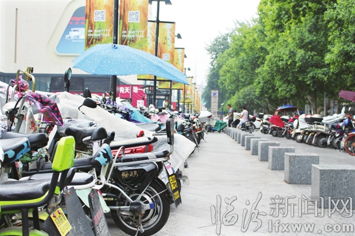 图为摆放整齐的非机动车