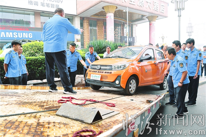 临汾新闻网讯 自市区道路交通综合专项行动开展以来,交通秩序和环境卫生有了很大改善。图为联合执法小组正在清理乱停乱放的机动车。