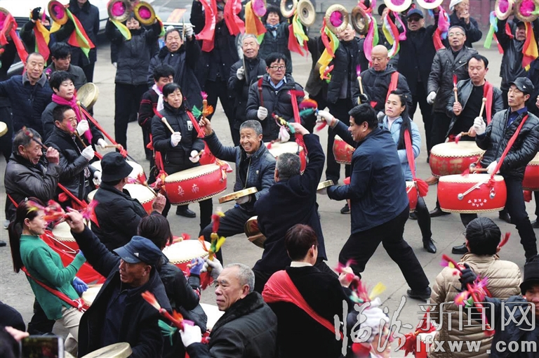 尧都区西赵村村民击鼓鸣锣闹元宵。记者 苏亚兵 摄