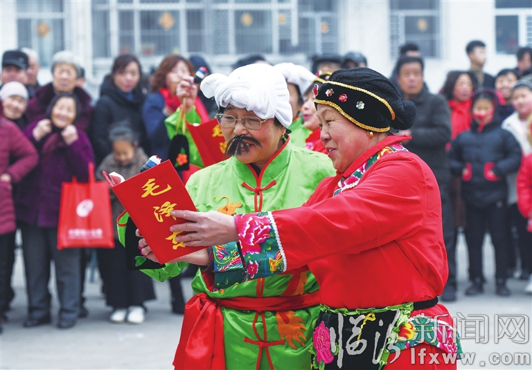 洪洞县官庄村,村民兴高采烈地表演文艺节目。记者 闫锐鹏 摄