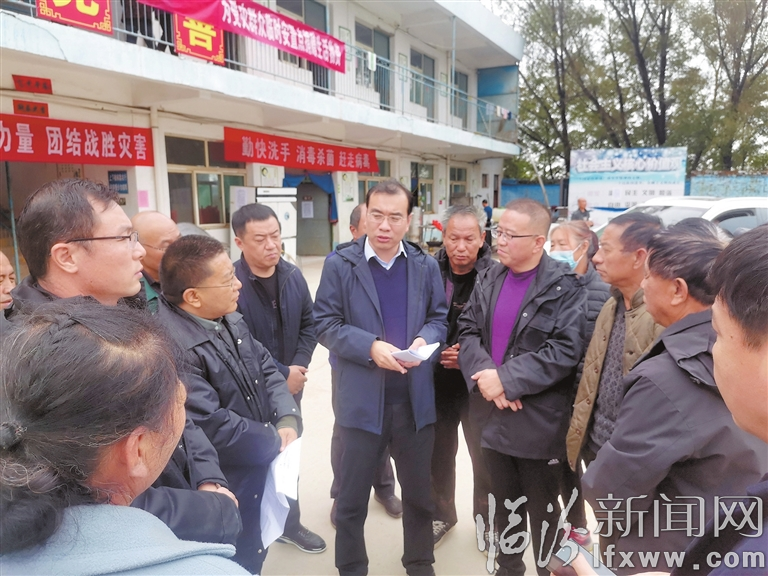 10月13日,霍俊波在对竹镇检查指导防汛救灾和灾后恢复重建工作,并到康和临时安置点看望转移群众。
