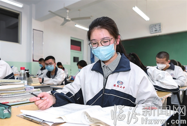 临汾新闻网讯 4月3日,临汾三中高三年级学生正在课堂上查阅复习资料。自全市高三年级开学以来,该校采取“小班教学、逐人筛查、分散住宿、错时用餐、应急处置”等举措,确保师生健康安全和教学工作科学有序开展。