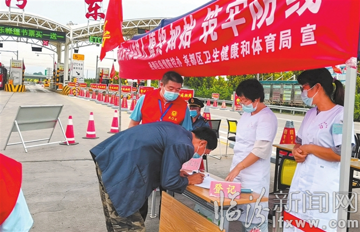 从8月9日起,市翱翔志愿服务队的志愿者们分别在临汾高速口、临汾东高速口、临汾南高速口、临汾火车站配合防疫人员做志愿引导等工作,助力筑牢全民免疫屏障。图为8月22日,志愿者在临汾东高速口开展服务。