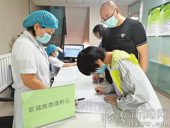 临汾新闻网讯 8月21日,我市启动了12至14周岁学生接种新冠疫苗工作,各个社区卫生服务中心(站)积极开展此项工作。图为尧都区水塔社区卫生服务中心,适龄学生正在填写接种疫苗的相关信息。