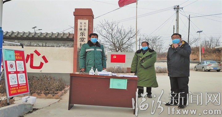 临汾新闻网讯 近日,大宁县在马头关黄河公路大桥和各村启动疫情防控安检查控工作,按照“逢车必查、逢人必核”的查控措施,开展24小时不间断排查,坚决做到“不漏一车、不漏一人”。图为大宁县太古镇乐堂村村医贺星龙与执勤人员在疫情防控点执勤。