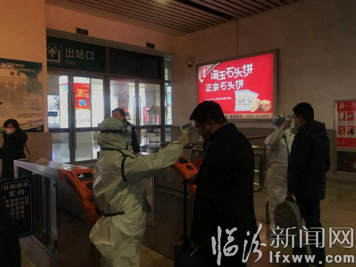 在出站口,记者看到,这里设置了体温监测点,来自太原局集团公司疾控所和市中心医院的医护人员身穿防护服,戴着口罩和护目镜,为每一位出站乘客测量体温,出站通道还设置“留观室”作为车站隔离区。