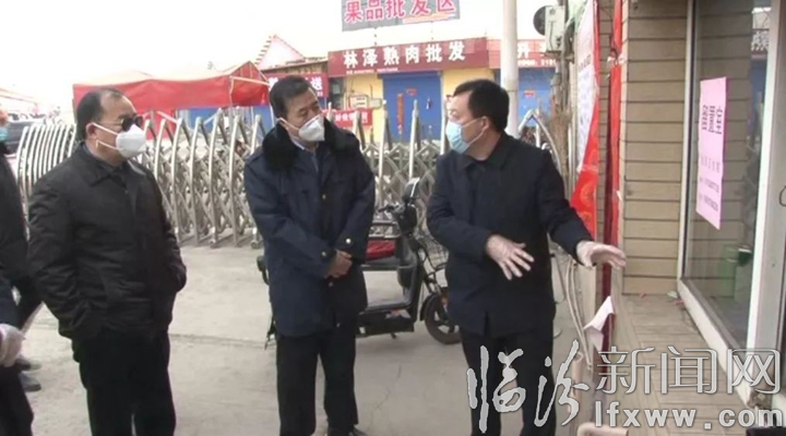 在馨阳农贸批发市场,检查组查看了货运车辆出入登记及消毒、人员进出测温记录、市场卫生环境消杀灭源、原活禽活畜交易场所的封闭及市场建立疫情防控留置室的运行等情况。