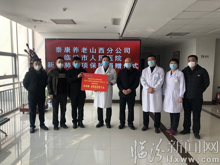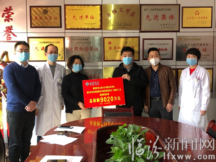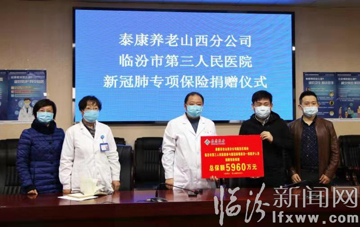 泰康保险山西分公司于1月22日向临汾一线的医护人员捐赠20万元保额的保险,保障期为一年。