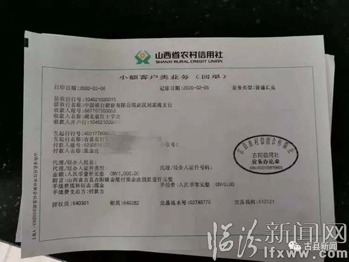想为武汉捐款的大爷姓梁,金堆村人,今年70岁,是村里的五保户,靠低保过日子。因不知道怎么捐,情急之下想到信用社可以汇款,于是就打电话给古阳信用社,他想要拿出1000元捐给湖北武汉红十字会用于疫情防控,并告诉工作人员,他看到国家经受这样的灾难非常难受,希望能尽一份绵薄之力。
