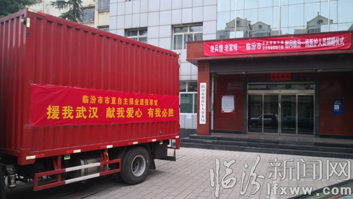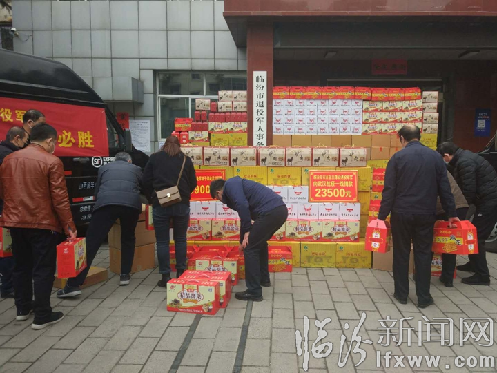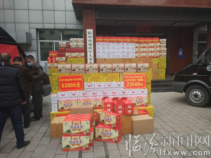 “我们都是党培养多年的老共产党员、老军人,虽然自己脱下了军装,但是服从命令的品质没有改变,面对这场突如其来的疫情,我们理应为党分忧,为国分忧。”军转干部代表说:“武汉抗疫是重中之重,为了表达我们对在前线抗疫的临汾医疗队员的敬佩之情,让他们在千里之外能吃到家乡味道,市属企业军转干部及市直自主择业退役军官分别捐款53900元、23500元,购买了牛肉丸子面、洪洞软米、麻花、枣夹核桃、酱菜、陈醋、老酱菜等七种临汾名牌特产,发运捐往天门、仙桃、潜江、武汉4市,以尽军转干部一份心意。”