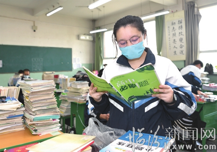 临汾新华中学学生在整理书本。记者 闫锐鹏 摄