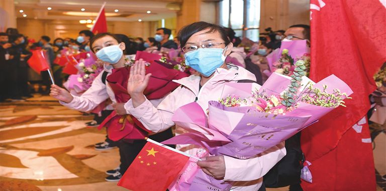 10时,胡越彦和同学们来到久违的教室,看到黑板上写的“春暖花开,迎你归来”时,眼睛有些湿润了。这时,有几位老师帮同学们把书本送到了教室。一位老师说,原本一个班有近50名学生,现已分成A、B两个班,每班不到30人,单人单桌,都经过了严格消毒。胡越彦对身边的同学说:“老师们太辛苦了,我们一定要尽早进入状态,加倍努力,争取用优异的成绩回馈老师。”