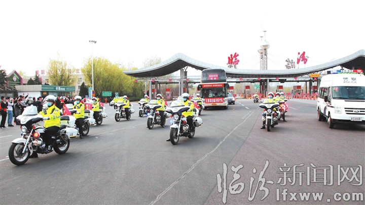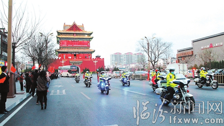 临汾新闻网讯 3月23日下午6时30分,我市首批支援湖北医疗队完成救治任务平安归来,市公安局交警支队迎接“英雄”回家。