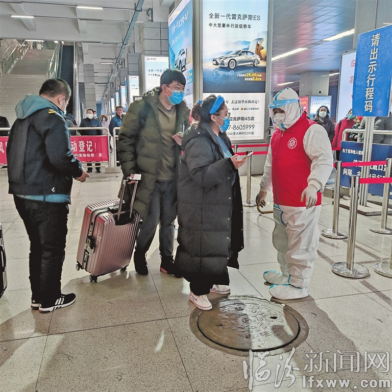 临汾新闻网讯 日前,市妇幼保健院志愿者服务队来到临汾西站,积极开展“守护临汾”——助力新冠疫情防控志愿服务活动,严格做好出站旅客体温测量、“两码”查验、信息登记等工作,以实际行动筑牢“外防输入”的第一道防线。 本报记者 摄