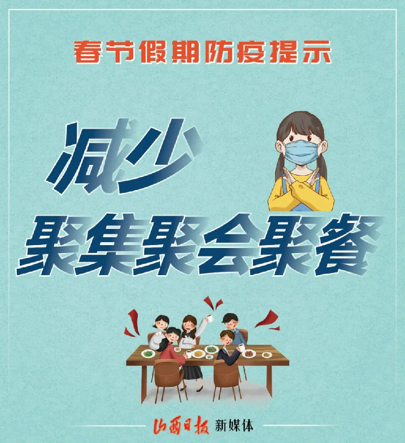 目前境外新冠疫情持续蔓延,国内多地发生散发病例和局部聚集性疫情,外防输入内防反弹的防控压力不断增大。春节假期即将到来,人员流动和聚集相对频繁,在此提醒大家,必须时刻保持高度警觉,在享受新春佳节同时,疫情防控意识一刻都不能放松。