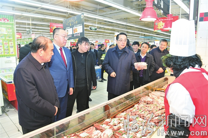 2020年1月21日,市委副书记、代市长李云峰在万佳福仓储超市平阳南街店调研市场供应情况。记者 苏亚兵 摄