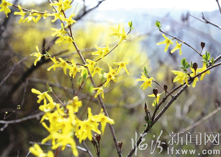 天然氧吧寨圪塔乡万亩连翘花正俏