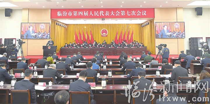上午9时,陈小洪宣布:临汾市第四届人民代表大会第七次会议开幕。全体起立,奏唱国歌。