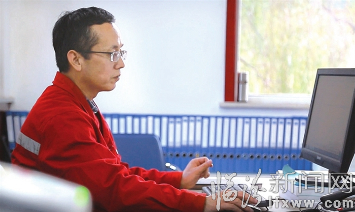 图为王强在办公室工作。