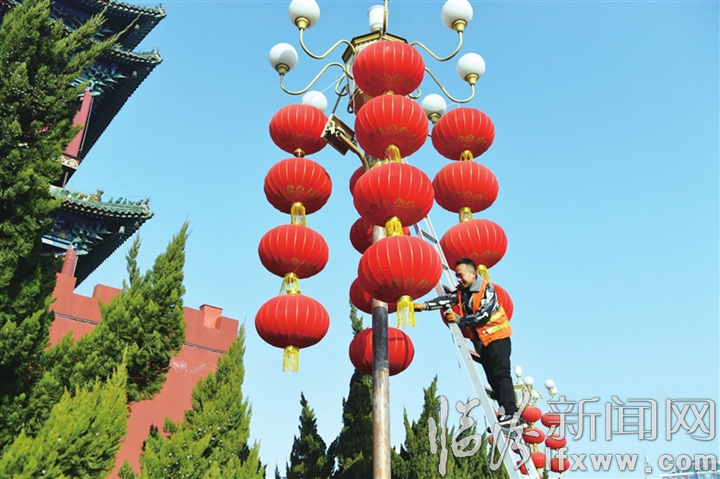 临汾新闻网讯 1月19日,市城市照明维护中心的工作人员正在鼓楼附近悬挂红灯笼,将市区装点得红红火火。为了营造社会和谐、家庭幸福的喜庆祥和节日氛围,我市大街小巷陆续悬挂大红灯笼及满天星、树冠流星雨、变色投光灯等亮化灯具,喜迎新春佳节的到来。
