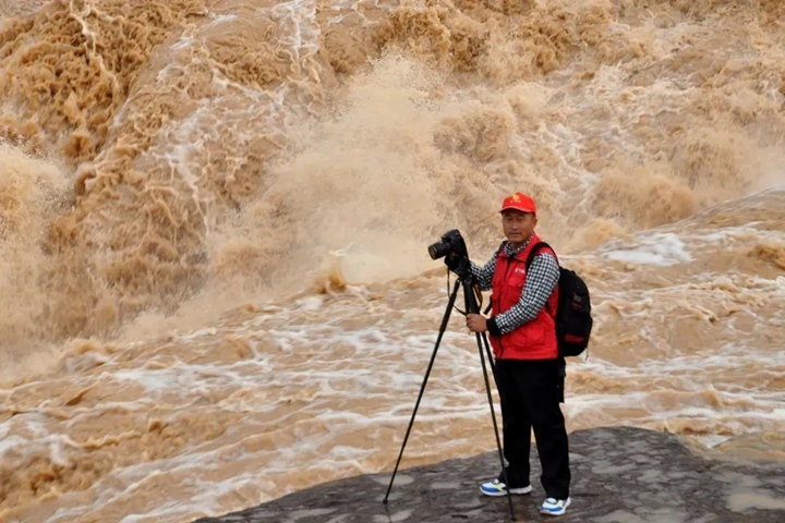 9月20日,“中国梦 黄河情——黄河流域生态保护和高质量发展”网络主题活动采访团走进壶口瀑布景区时,吕桂明正在拍摄壶口瀑布。
