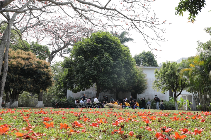 春夏之交,广东省中山市南朗镇杨殷故居外的空地上,百年木棉树已开出茂盛的红色花朵。炽烈的颜色,就像英雄的鲜血染红了树梢。木棉树壮硕的躯干、顶天立地的姿态,犹如烈士的风骨。