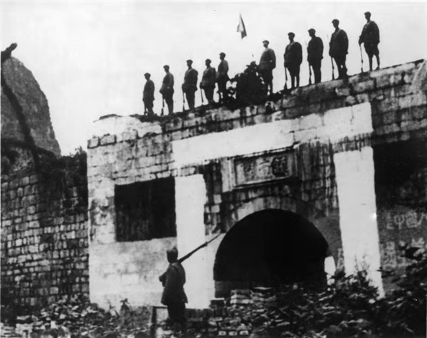 1949年12月11日18时30分,解放军第39军115师343团占领镇南关,将红旗插上关楼。图片由左江日报社提供