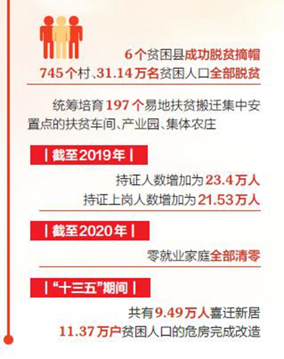 出台《关于易地扶贫搬迁后续产业发展的指导意见》,开工建设易地搬迁安置点产业项目91个。全市易地扶贫搬迁安置点群众基本实现经营性收入和工资性收入有保障。扎实推进土地复垦工作,452个整体搬迁村,拆除完成率100%。
